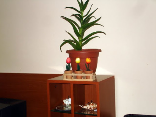 Aloa vera sa tulipanima koje mi je kćer donela iz Holandije, ovakvi se njoj najviše sviđaju jer ne mora brinuti o njima.